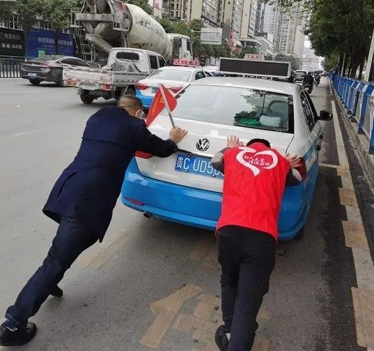 12月6日上午10点左右,公司志愿者龚松涛在该路段执勤的时候,突然看到红绿灯处一辆出租车停在斑马线上,迟迟没有要走的迹象。觉察到异样的龚松涛立即上前询问情况,“车子好像发生了故障,突然无法启动了。”车主王大哥焦急地说。