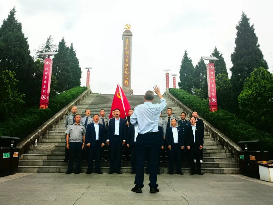 参观四渡赤水纪念馆后,全体党员同志徒步到青杠坡战斗遗址文化园,在青杠坡红军烈士纪念碑前,中枢分公司党支部书记何宗凯带领全体党员向革命先烈敬献花篮,重温入党誓词,合唱《没有共产党就没有新中国》,缅怀革命先烈。