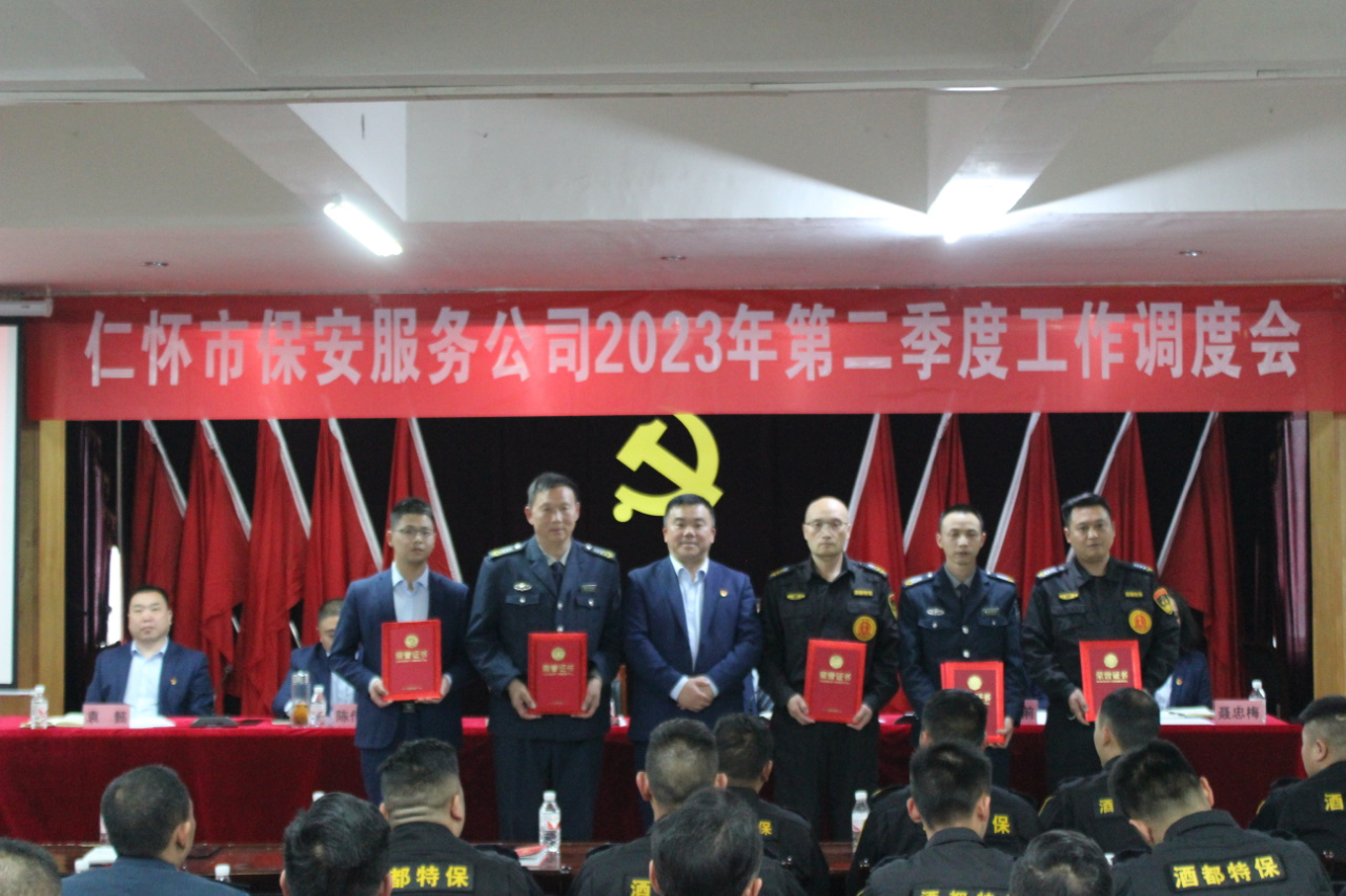 会议对第一季度工作完成情况进行小结,对存在的问题作了梳理剖析;对第二季度重点工作从“党建工作、综合管理、业务勤务、人力资源、财务后勤”等方面作了详细安排部署。会议还对荣获2022年度遵义市保安行业协会见义勇为保安员胡旭、优秀信息员聂忠伟、先进个人冯洪等5名同志进行表彰奖励。